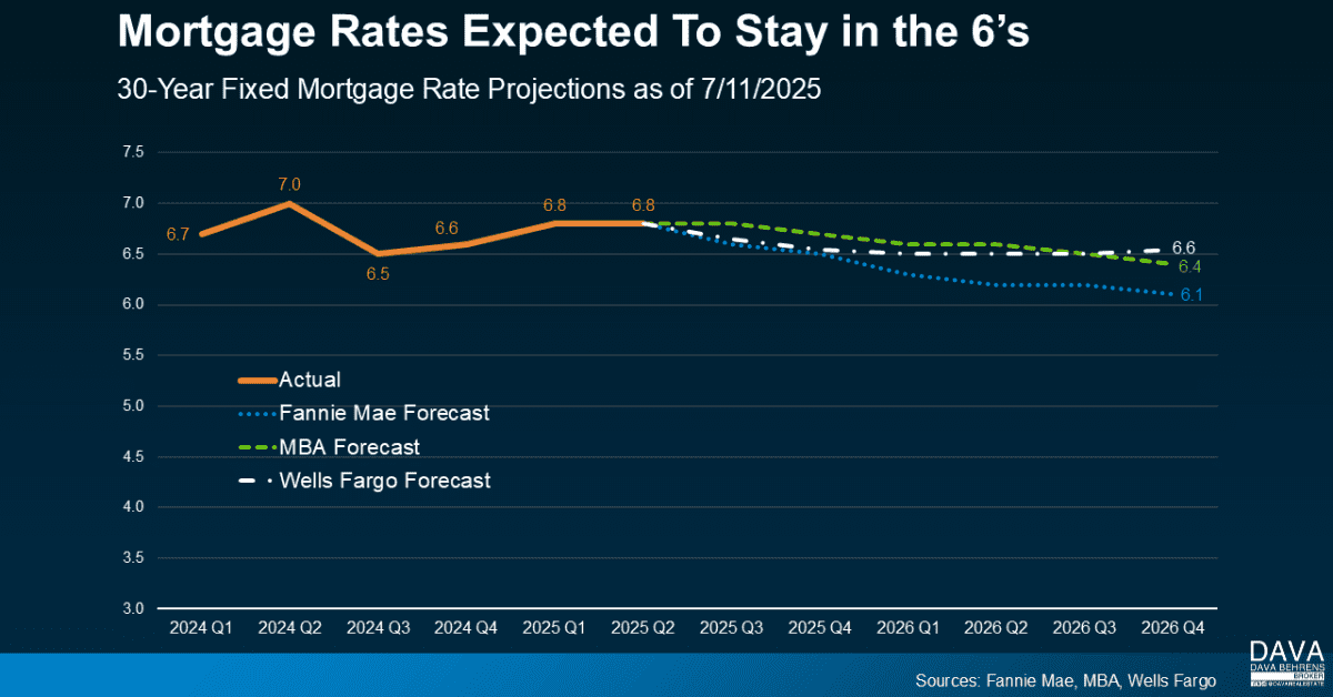And if we look at the latest expert forecasts that go out a bit further, even those tell much of the same story. Two out of the three projections say rates will still likely be in the mid-6% range by the end of 2026 (see graph below):