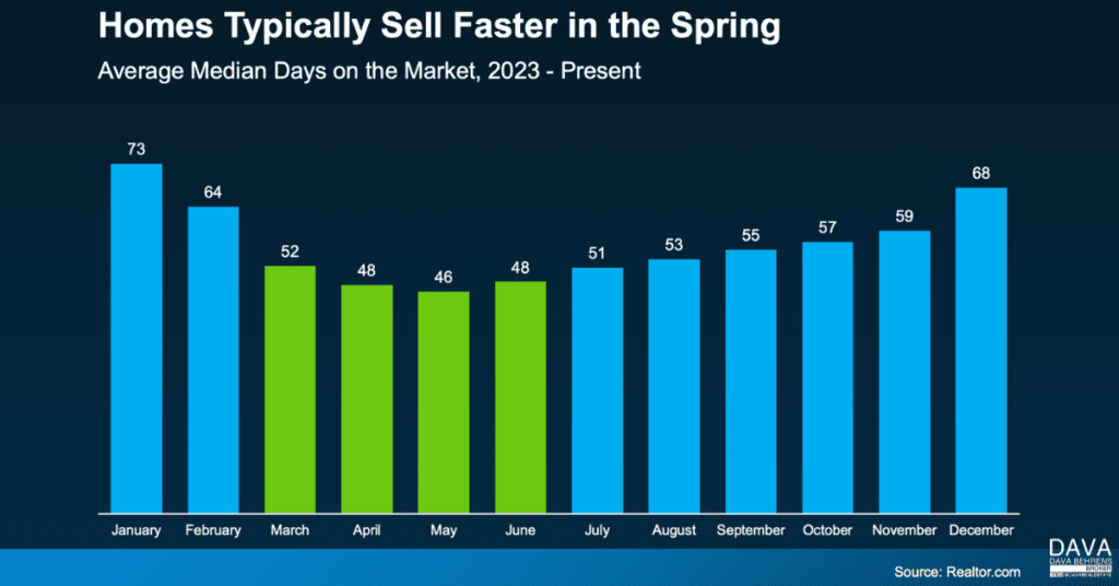 On average, homes sell 20 days faster in the Spring compared to the Winter. That’s almost 3 weeks shaved off your timeline. And that’s a difference you can feel.