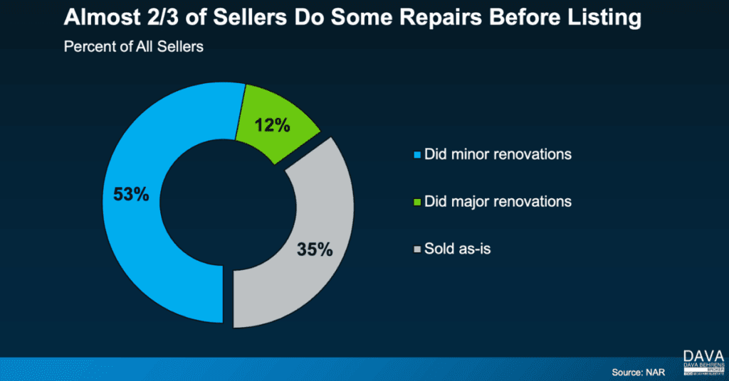 According to a recent study from the National Association of Realtors (NAR), two-thirds of sellers (65%) completed minor repairs or improvements before selling (the blue and the green in the chart below). And only one-third (35%) sold as-is: